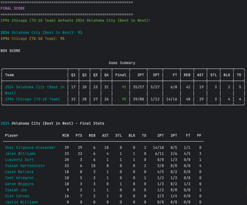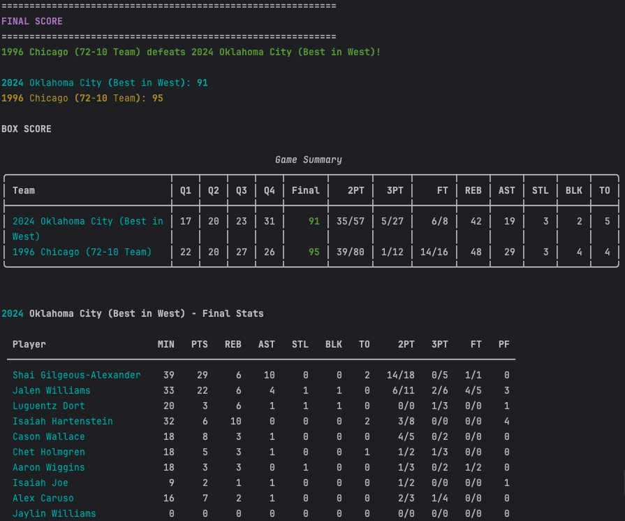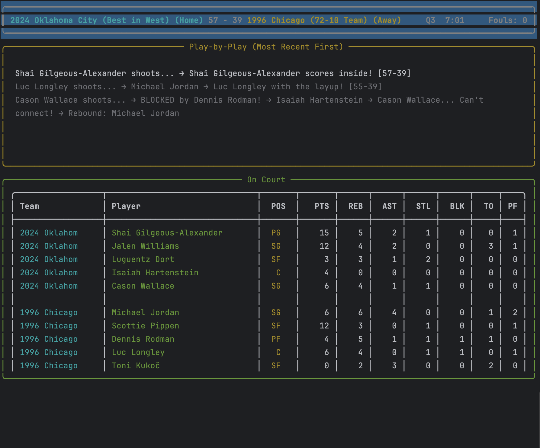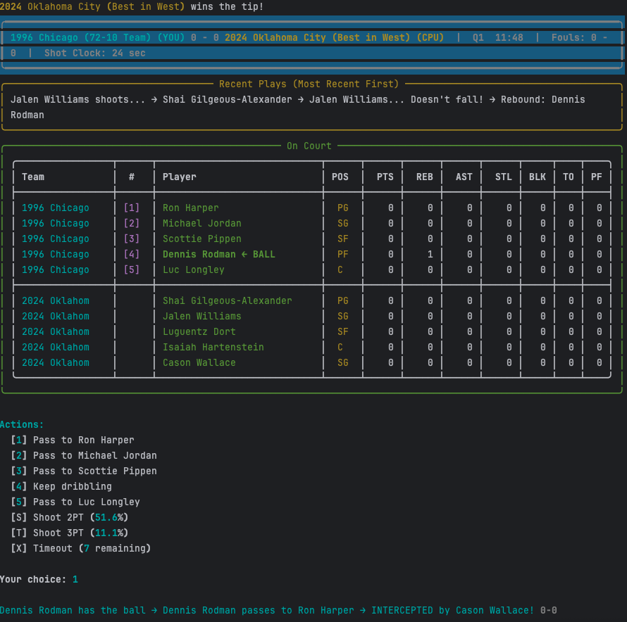 Experience the thrill of cross-era basketball matchups in this nostalgic text-based simulation!